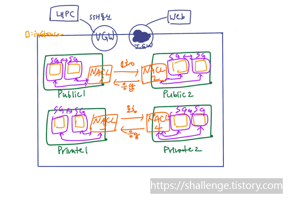 출처https://explore.skillbuilder.aws/learn/course/5423/protecting-your-instance-with-security-groups-koreanhttps://explore.skillbuilder.aws/learn/course/3966/differences-between-security-groups-and-nacls-koreanhttps://docs.aws.amazon.com/config/latest/developerguide/operational-best-practices-for-k-isms.html Security GroupNACLNetwork Access Control List역할,위치인스턴스 레벨의 인바운드 및 아웃바운드 트래픽을 인스턴스 레벨에서 적용..